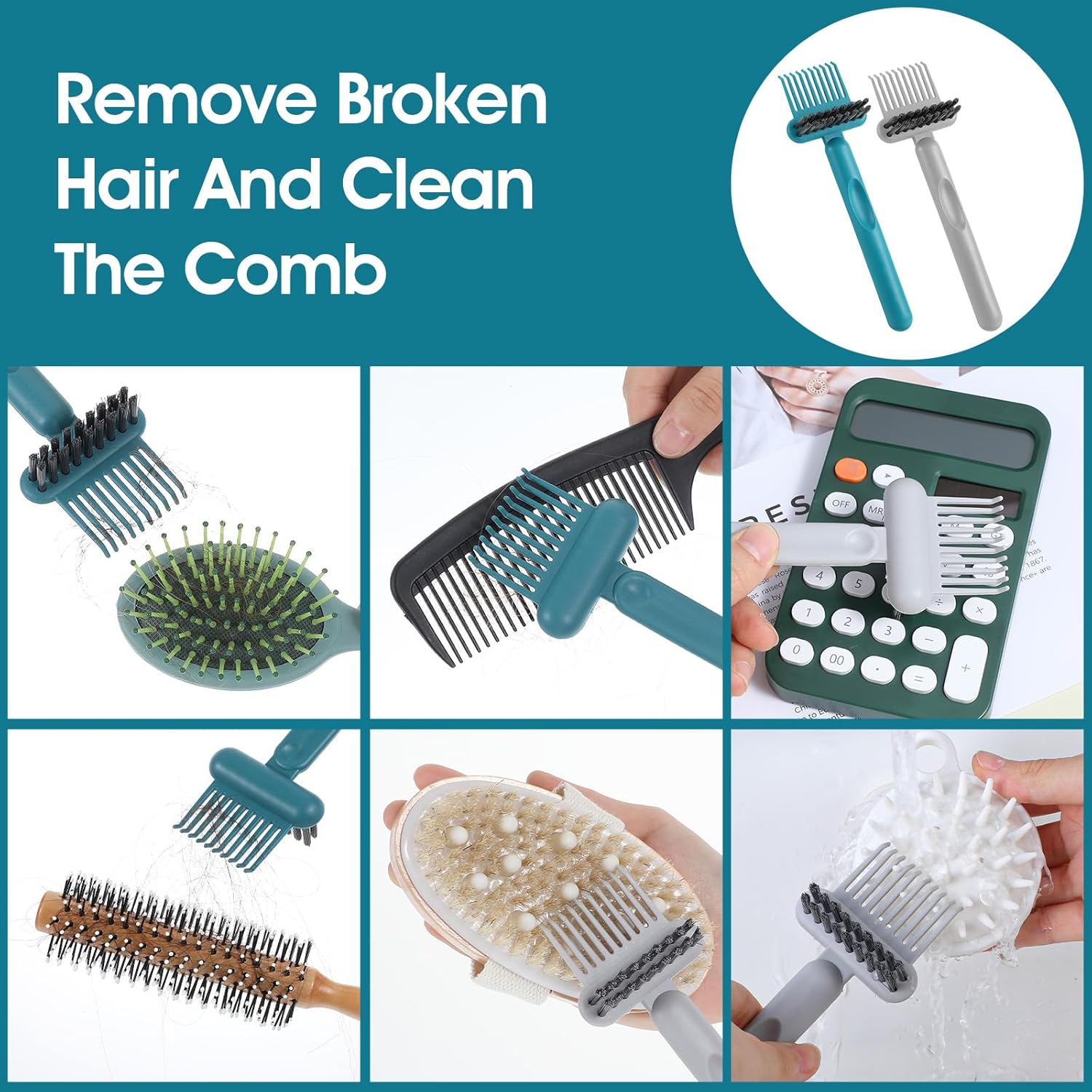 1 review for 2 Pack 2-in-1 Hair Brush Cleaner, Comb Remover Tool, hair brush cleaner tool brush cleaner tool for Home, Salon Removal Hair Dust (Gray, Dark Green) (Gray, Dark green)