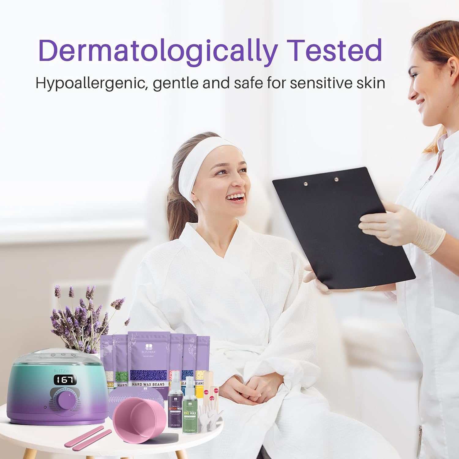 👍𝐁𝐞𝐠𝐢𝐧𝐧𝐞𝐫-𝐅𝐫𝐢𝐞𝐧𝐝𝐥𝐲 𝐀𝐧𝐝 𝐄𝐚𝐬𝐲 𝐓𝐨 𝐔𝐬𝐞: Our home wax kit is designed with precise temperature control, allowing you to melt wax at the optimal degree for effective hair removal. Clear, step-by-step instructions make it simple for beginners to achieve smooth results