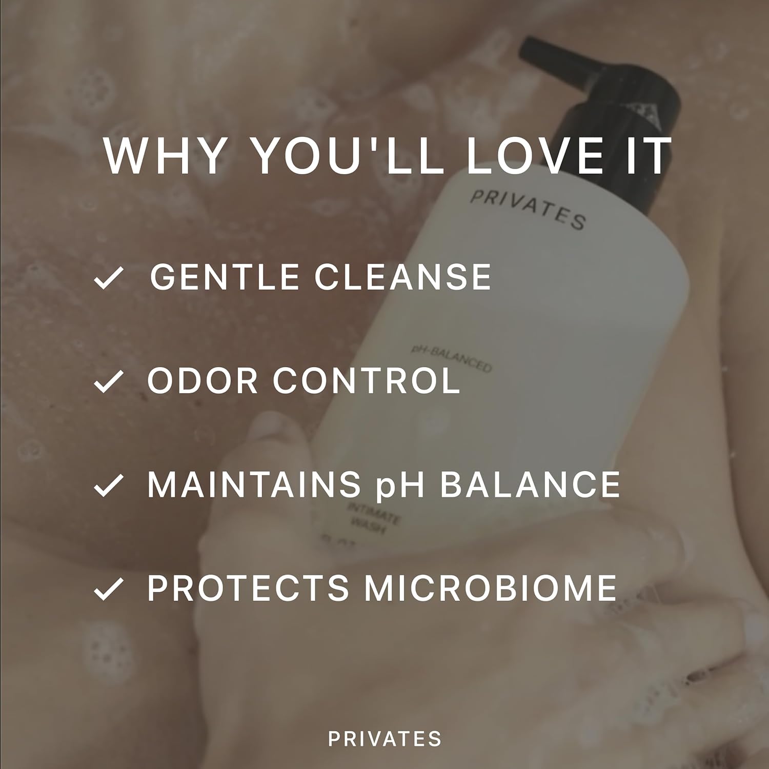 PRIVATES pH-Balanced INTIMATE WASH for Women & Men | Odor Control, Irritation & Dryness Relief | Hydrating & Soothing with Aloe | Microbiome-Friendly | Natural Ingredients | Fragrance-Free | 10 fl oz
